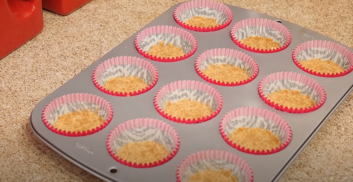 Tak získáte těsto na korpus. Dále si k ruce vezměte formu na muffiny a tu vystelte pečícím papírem. Postačí ovšem i speciální košíčky z pergamenu. Do každého z nich naneste trochu sušenkové hmoty a přitlačte ke dnu prsty.