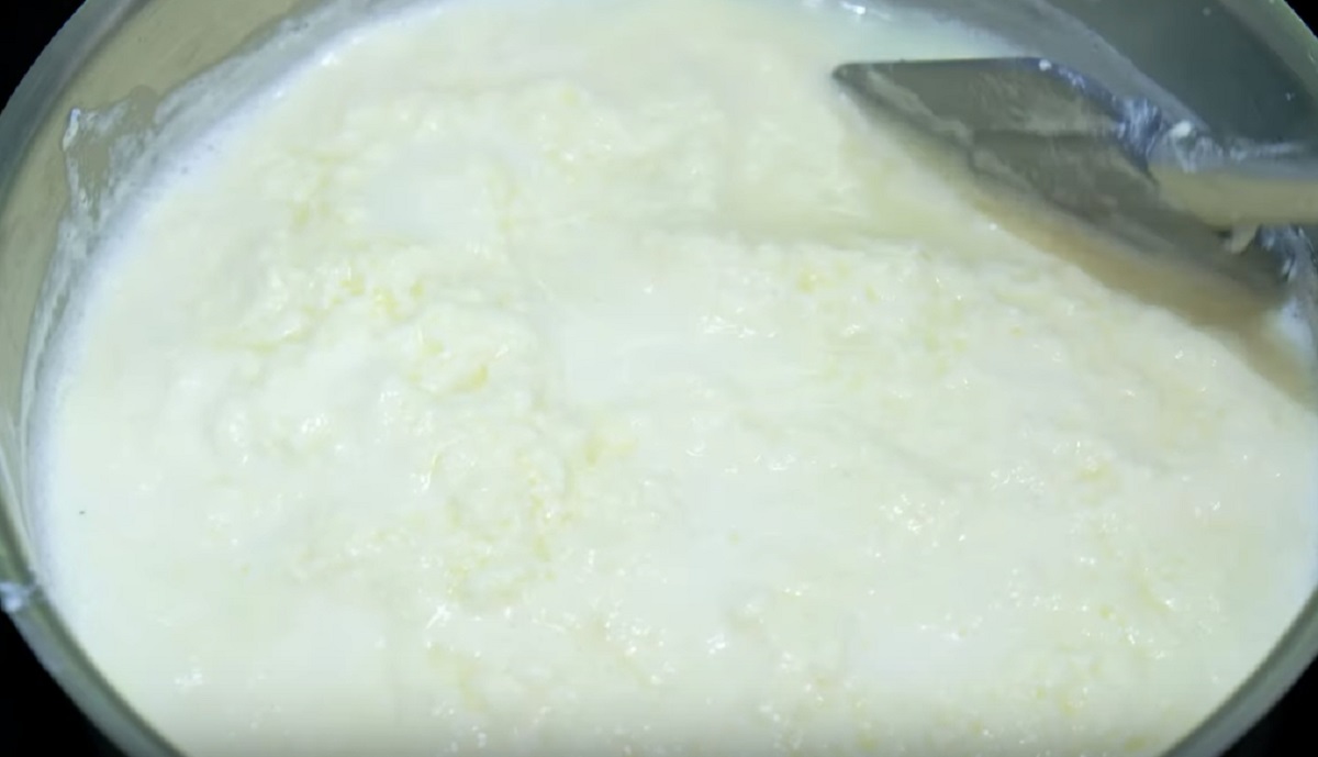 Výslednou směs přiveďte k varu a vařte ji po dobu kolem 5 až 7 minut. Během toho se začnou v hrnci z mléka tvořit velké hrudky hmoty, která se postupně začne oddělovat od syrovátky.