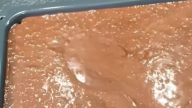 Do směsi vešlehejte olej a nakonec směs suchých ingrediencí a vroucí vodu. Vzniklé těsto vlijte do formy na pečení, vyložené pečicím papírem a pečte ho v předehřáté troubě na 160 °C po dobu 40 minut.