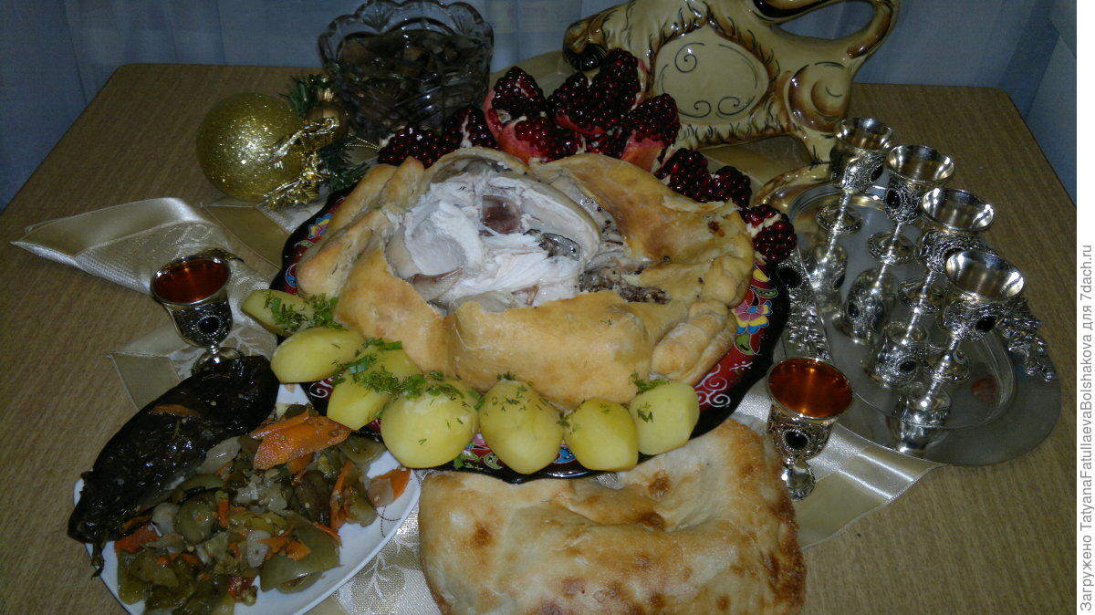 Kuřecí maso je vděčnou kulinářskou ingrediencí. Dá se připravit na tisíc způsobů a stále to nebude vyčerpávající seznam. Velmi dobře pasuje prakticky ke všem představitelným surovinám, jako jsou všechny druhy zeleniny a ovoce a můžete je obalovat do všemožných druhů těstíček a krust. My vám dnes představíme jednoduché, zato ale šťavnaté kuře, které je v celku zapečené v obalu z jednoduchého těsta. Doplnit se pak dá vařenými bramborami, a pokud chcete trochu pikantnější chuť, můžete přidat k obloze také pár zrníček z granátového jablka.