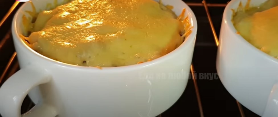 Připravte si zapékací misky a naplňte je kuřecím masem v omáčce. Sýr nastrouhejte na hrubém struhadle a zasypejte jím povrch pokrmu v miskách. Takto je vložte do trouby a zapečte je při teplotě 180 °C po dobu 10 až 15 minut, aby se sýr roztekl a zezlátl.