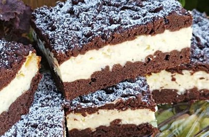Plech s připraveným koláčem vložte do trouby vyhřáté na teplotu 170 °C a pečte ho asi 40 minut. Po dopečení nechte buchtu vychladnout. Její povrch posypejte moučkovým cukrem, nakrájejte ji na porce a podávejte spolu se šálkem voňavého čaje nebo kávy.