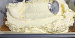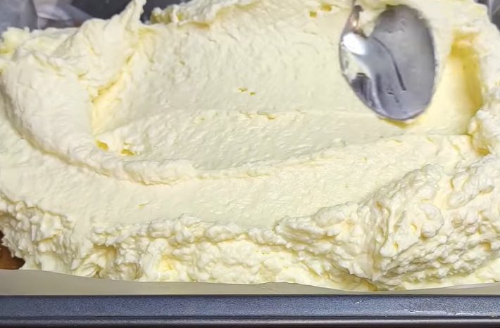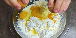 Těsně před uplynutím dané doby se vrhněte na přípravu náplně. Vyšlehejte smetanu ke šlehání, smíchejte ji s tvarohem a rozklepněte do směsi vejce. Přidejte cukr, strouhaný kokos, kukuřičný škrob, vanilkový cukr a vyšlehejte do krému.