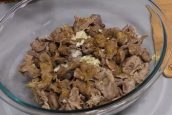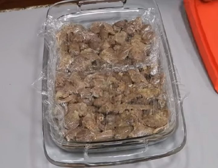 Zde je promíchejte se sušeným oreganem a mletou paprikou. K ruce si vezměte zapékací skleněnou misku a do ní rovnoměrně navrstvěte vařené a ochucené kuřecí žaludky. Posléze si odlijte asi hrnek vývaru a vmíchejte do něj želatinu. Roztokem přelijte maso, mísu přikryjte potravinovou fólií a dejte do lednice ztuhnout.