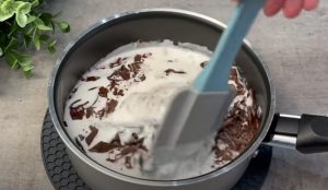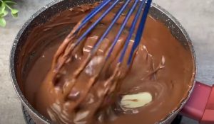 Rendlík dejte na kamna a na mírném plameni za stálého míchání vařte, dokud směs nezhoustne zhruba do pudinkové konzistence. Poté ji z plamene odstavte a přidejte hořkou čokoládu a míchejte, dokud se všechna nerozpustí. Nakonec přidejte máslo, které nechte v horké směsi rozpustit, a pečlivě ho do ní vmíchejte.