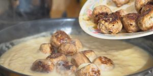 Tradiční masové kuličky se smetanovou omáčkou a bramborovou kaší je spojení, které si vychutnáte kdykoli jen budete chtít.
