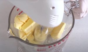 Mírně povolené, ale stále studené máslo nakrájejte na menší kousky a vložte ho do misky. Ručním šlehačem jej vyšlehejte do krému. Nejspíše se vám zprvu celé nalepí na šlehací metly, toho se ale nelekejte. Pokračujte ve šlehání, dokud máslo nezíská krémovou konzistenci.
