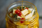 Každou sklenici zalijte jedním druhem marinády tak, aby kousky sýra byly všechny důkladně potopené. Sklenice důkladně zavíčkujte a každou párkrát jemně ťukněte o stůl, abyste vyhnali ven všechny bublinky vzduchu, které uvnitř směsi zůstaly.