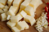 Sýr nakrájejte na malé kostky. Česnek očistěte a nasekejte najemno a chilli papričku omyjte, zbavte ji stopky a semínek a nakrájejte ji na kroužky. Citrón důkladně umyjte a i s kůrou ho nakrájejte na drobno, případně ho můžete také umlít mlýnkem na maso. Připravte si také všechno zvolené koření a bylinky.