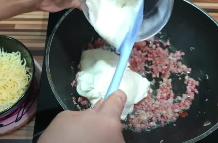 Těstoviny à la carbonara se smetanou - postup přípravy