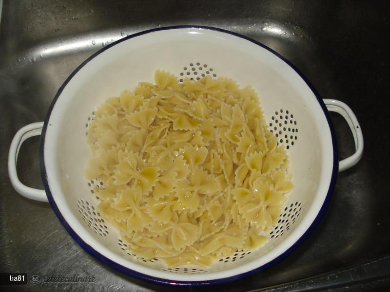 Těstoviny slijte a nechte z nich okapat veškeré přebytečné tekutiny.