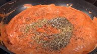 K cibuli vmíchejte nakrájený česnek, chilli papričky a po 2 minutách smažení do směsi vmíchejte rajčatový protlak a smetanu. Omáčku vařte 5 minut a nakonec ji ochuťte solí, pepřem, oreganem a bazalkou.