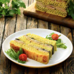 Další vrstva pak bude tvořena plátky šunky, které jakoby zarolujte a navrstvěte na zeleninu.