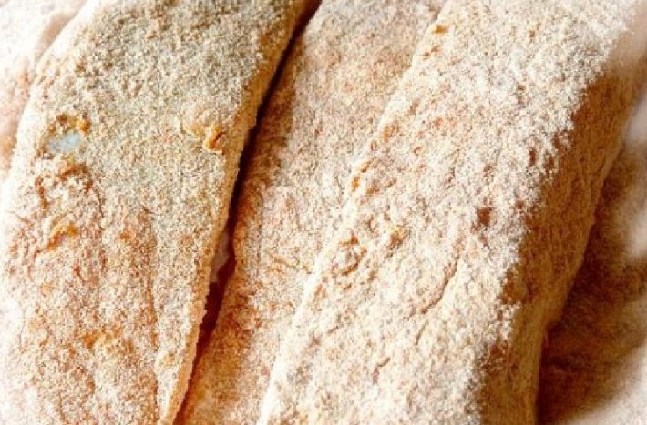 Do hlubokého talíře nasypejte strouhanku, do druhého hladkou mouku a do třetího vyklepněte dvě vajíčka, která rozšlehejte vidličkou do hladké konzistence. Každý kapří filet pak obalte nejprve v hladké mouce, poté ve vajíčku a nakonec ve strouhance.