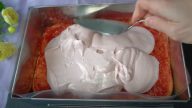 Bokem si odložte 3–4 lžíce krému a polovinou jeho zbytku pokryjte korpus v ráfku. Krém zakryjte druhým korpusem, který potřete zbytkem krému. Dezert vložte na 30 minut do lednice a na závěr připravte polevu.