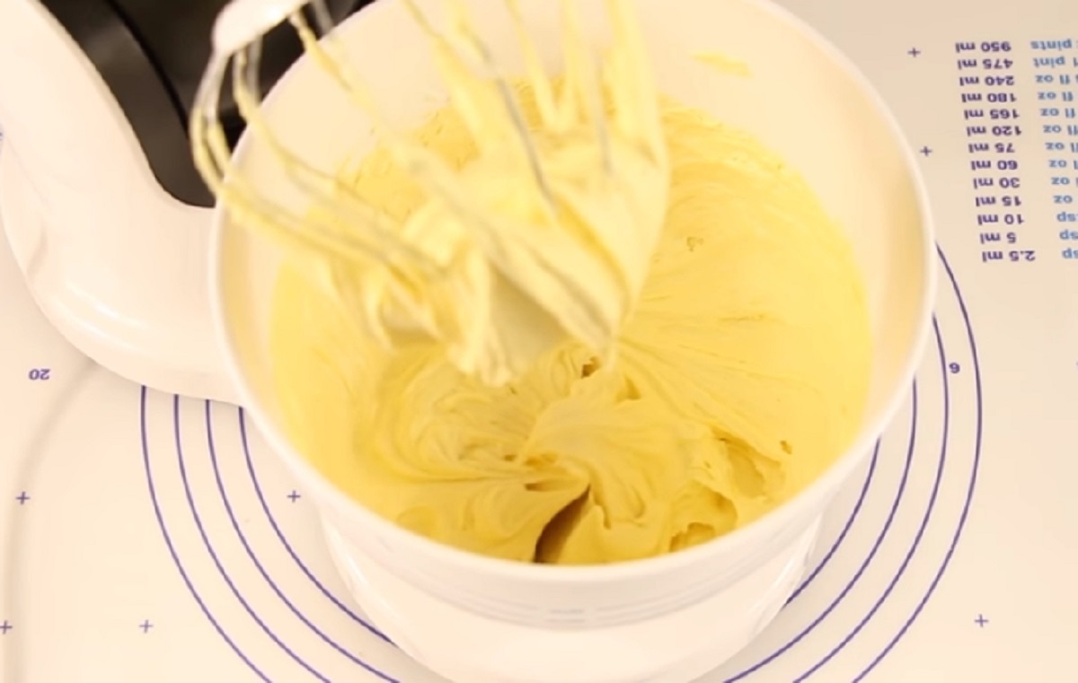 V míse si vyšlehejte měkké máslo s cukrem do pěny, poté přidejte i vejce, prosátou hladkou mouku, špetku soli, kukuřičný škrob, kypřící prášek do pečiva a dobře promíchejte. Vypracovat byste měli homogenní měkké těsto, které se nebude lepit na prsty.