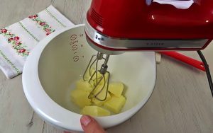 Změklé máslo nakrájejte na menší kostky, vložte je do mísy a šlehačem z něj vyšlehejte jemný a vzdušný krém.