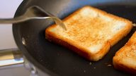 Na pánvi s rozpáleným olivovým olejem smažte toastový chleba cca 1 minutu, z každé strany.