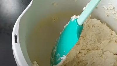 Změklé máslo šlehejte 1–2 minuty. Za stálého šlehání do něj následně přidejte vanilkový cukr s vejcem, tvarohem, citronovou kůrou, špetkou soli a moukou.
