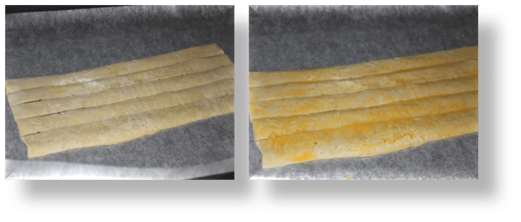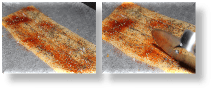 Poté si k ruce vezměte rádlo na pizzu a vykrojte jím asi centimetr široké proužky, které budou dlouhé cca 15 cm.