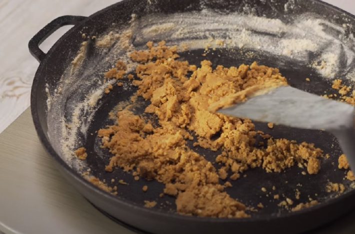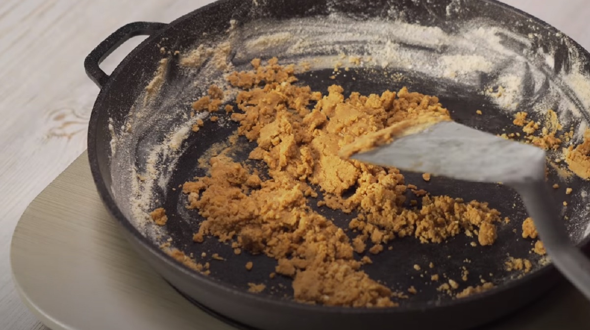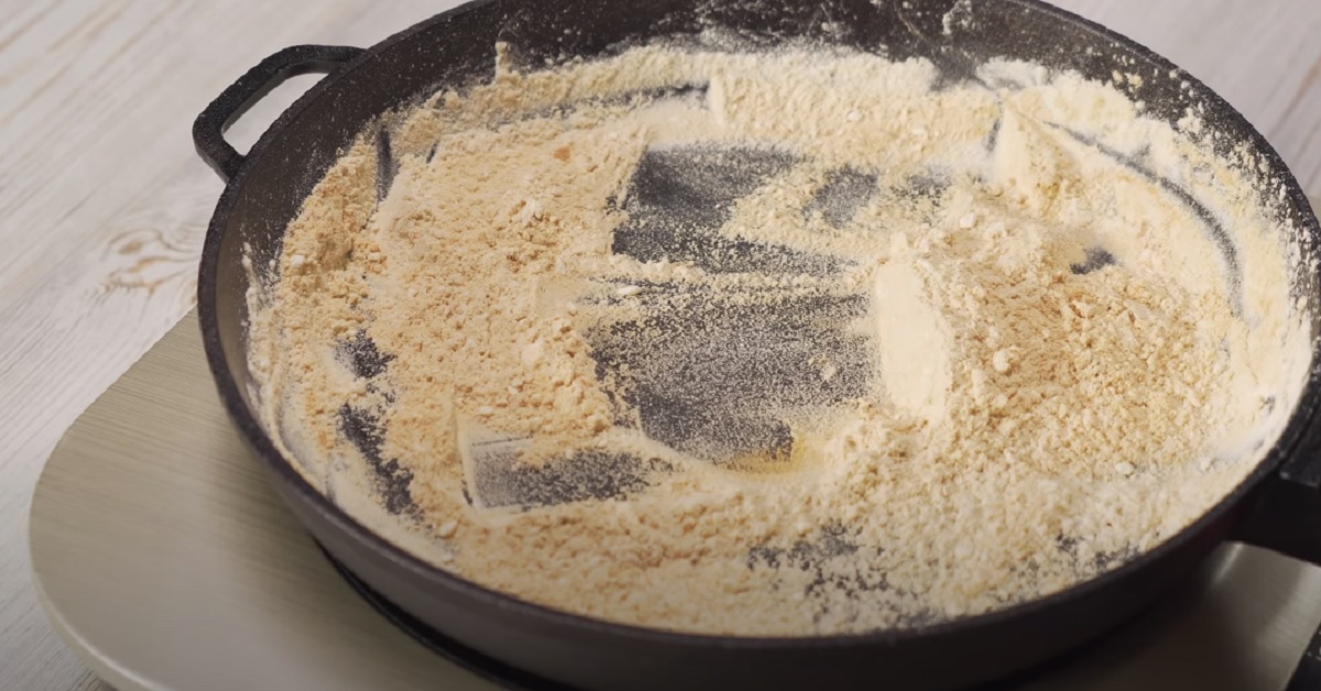 Do stejné pánve dejte mouku a opečte ji, dokud lehce nezhnědne.