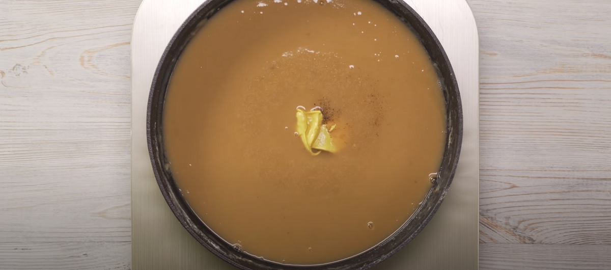 Postupně můžete přidat hovězí vývar a neustále dobře míchat, aby v něm nezůstaly žádné hrudky. Přidejte hořčici, sůl a mletý černý pepř podle chuti. Znovu promíchejte.