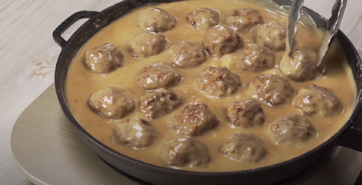 Tohle jídlo musíte vyzkoušet! Švédské masové kuličky v bílé omáčce podávané s vařenými bramborami, nakládanými okurkami a brusinkovým džemem nebo marmeládou je úžasný recept na rychlou večeři. Možná vám přijde podivné podávat maso s brusinkovým džemem, ale je to skutečně vynikající kombinace, kterou si jistě zamilujete.