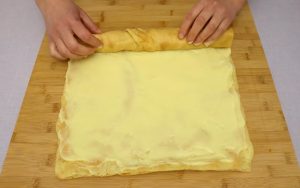 Vanilkový závin Karpatka z odpalovaného těsta plněný pudinkovým krémem - postup přípravy