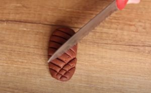 Udělejte z těsta kousky ve tvaru podlouhlého oblázku jako základ šišky a nožem nahoře vytlačte vzor do kříže. Pak je položte na plech vyložený pečicím papírem a dejte péct na 15 minut při teplotě 180 °C