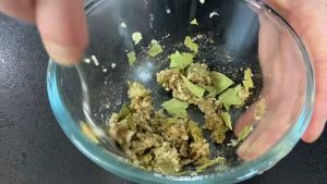 Do malé skleněné misky nalámejte tři až čtyři bobkové listy. Prolisujte k nim česnek, přidejte sůl, černý pepř, sladkou papriku a velmi dobře všechny přísady promíchejte do jednolité konzistence. Pak se vraťte zpátky ke slanině. Hrnec odstavte z ohně a nechte vše 20 až 30 minut zchladnout. Až poté vyndejte z vody v hrnci kousky slaniny ven na talíř.