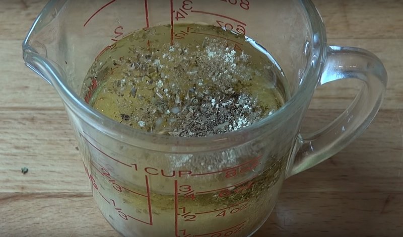 Nejprve si připravte marinádu. Ve větší misce si smíchejte citronovou šťávu, olivový olej, oregano, lisovaný česnek, sůl a mletý pepř. Pak vše dobře promíchejte.