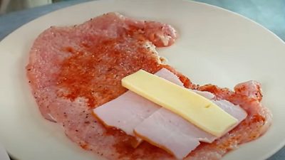 Vepřová kapsa se sýrem a šunkou - postup přípravy