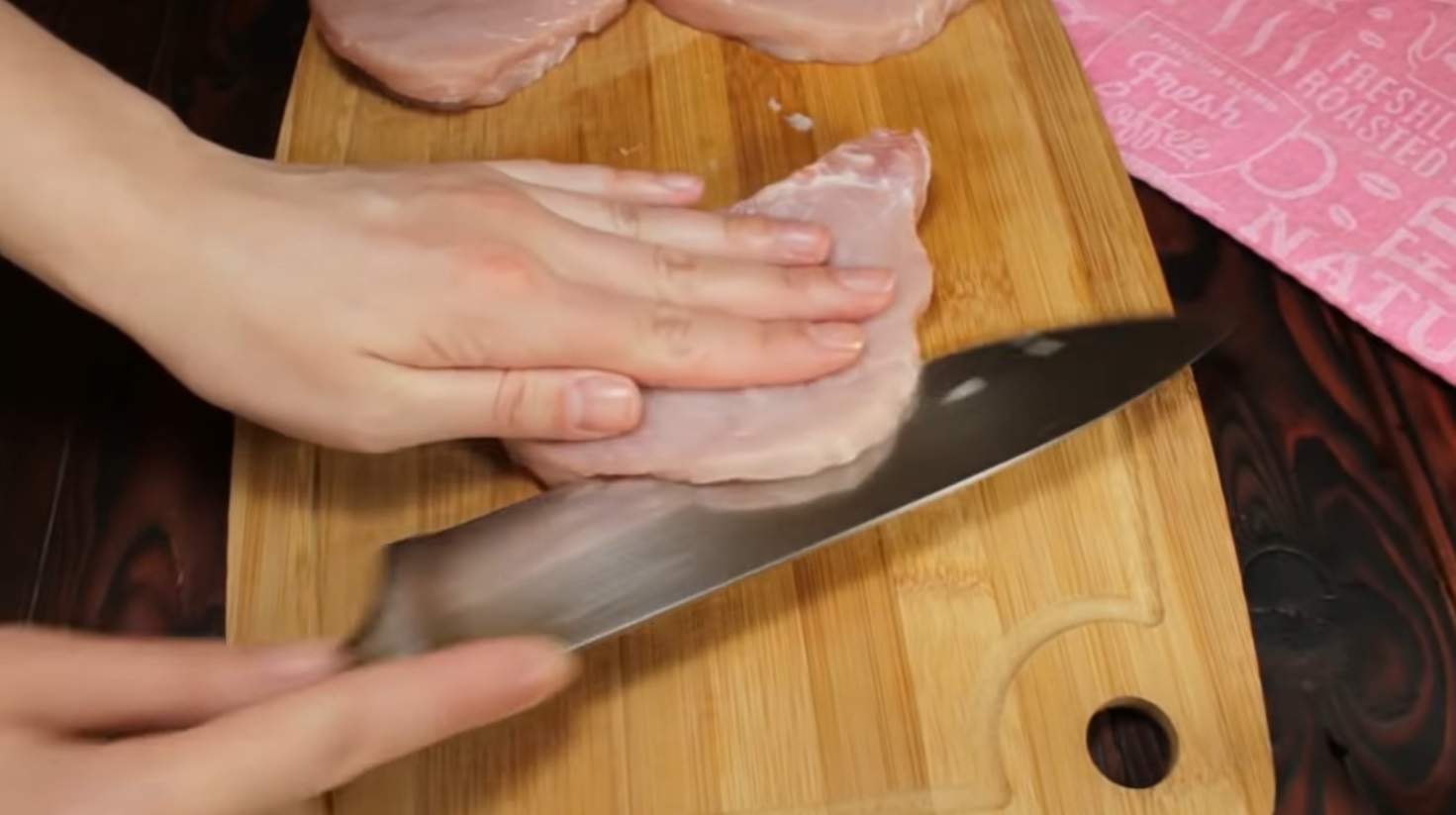 Vepřovou pečeni (případně jinou část vepřového masa, která vám imponuje) nakrájejte na silnější plátky. Ty pak ostrým nožem ještě podélně nařízněte tak, abyste vytvořili kapsu, kterou budete později plnit náplní.