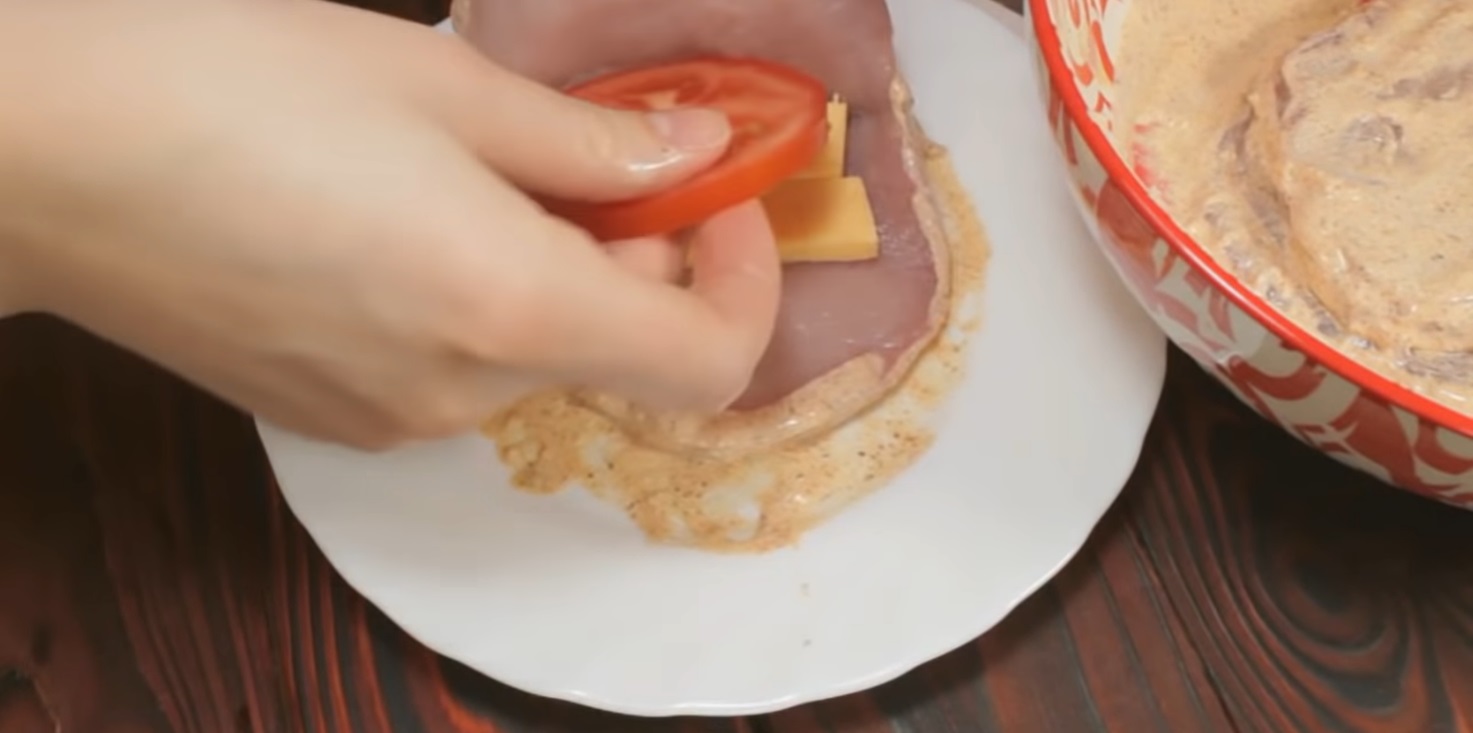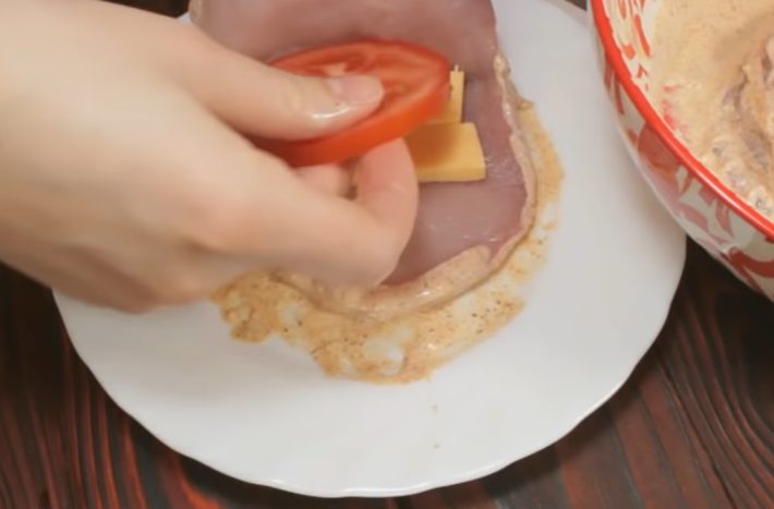 Vepřové kapsy plněné rajčaty a sýrem smažené v trojobalu - postup přípravy