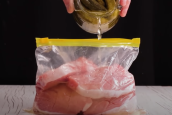 Začněte tím, že si maso naložíte v marinádě. Tu připravíte z okurkového láku, sladké mleté papriky, soli, mletého černého pepře a plnotučné hořčice. Vepřové kotletky nechte ve směsi naložené ideálně pár hodin, aby nasákly všemi chutěmi. Poté pokračujte v přípravě před pečením.