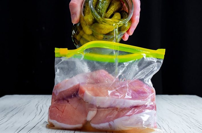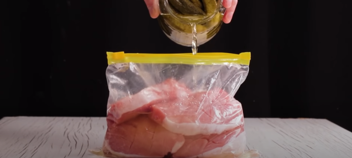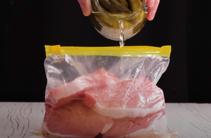 Už jste někdy marinovali vepřové maso v marinádě, která obsahovala lák z kyselých okurek? Pokud ne, určitě to zkuste. Vynikající výsledek vás nemine. Ochucené kotletky pak jen upečete v troubě s majonézou, rajčaty, kyselou okurkou, sýrem a všichni se budou oblizovat!
