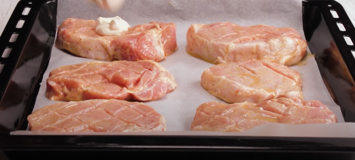 Dokončování vepřových kotletek a jejich pečení v troubě