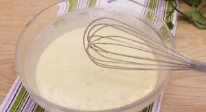 Do hluboké mísy vyklepněte dvě vajíčka, přidejte k nim špetku soli, jednu čajovou lžičku vanilkového cukru a tři polévkové lžíce klasického cukru krystalového. Metlou nebo šlehačem vyšlehejte všechny přísady do jednolité pěnivé směsi. Přilijte nejprve půl sklenice mléka a vše důkladně promíchejte. Pak přidejte hladkou mouku a kukuřičný škrob a míchejte, dokud nezískáte jednolitou směs. K té pak přilijte zbylé množství mléka a pokračujte v míchání, dokud nezískáte tekuté a řídké těsto. Na kamnech či v mikrovlnné troubě rozpusťte 30 gramů másla, přilijte ho do mísy s ingrediencemi a zapracujte ho do složení. Pokud by se stalo, že vám v těstě zůstanou moučné hrudky, nezoufejte a vezměte si k ruce ponorný mixér a důkladně jím těsto promixujte. Žádná hrudka proti němu nemá nejmenší šanci.