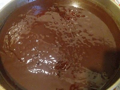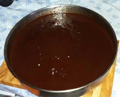 Upečený koláč nechte asi 15 minut vychladnout na pokojovou teplotu. Pak zalijte korpus ve formě čokoládovým sirupem a nechte vychladnout.