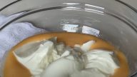Do těsta nejprve jemně vmíchejte třetinu sněhu, poté přidejte zbytek a lehce h promíchejte stěrkou, aby směs zůstala nadýchaná.