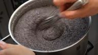 Ingredience přiveďte k varu a poté k nim přidejte krupici. Směs vařte 1–2 minuty, do zhoustnutí, odstavte ji z tepla a nechte 15 minut volně chladnout.