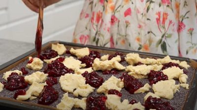 Vláčný koláč s makovou náplní a brusinkami - postup přípravy