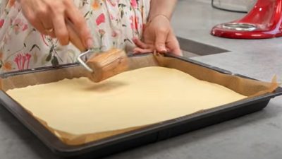 Poznámka: Třetinu těsta si odložte bokem pro závěrečné pokrytí dezertu.