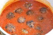 Rajčatovou omáčku, prolisovaný česnek, bobkové listy, ocet, cukr, sůl a pepř dejte do hrnce, důkladně promíchejte a nechte dusit. Jakmile omáčka začne houstnout, přidejte do ní osmažené masové kuličky a přiveďte k varu.