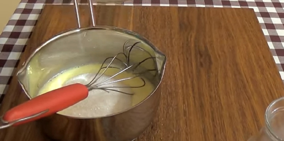Začněte tím, že si ve středně velkém hrnci propojíte pomocí metličky vaječné žloutky spolu s krupicovým cukrem, vanilkovým cukrem a mlékem. Poté vše dejte na sporák a provařte na mírnějším plamenu.