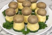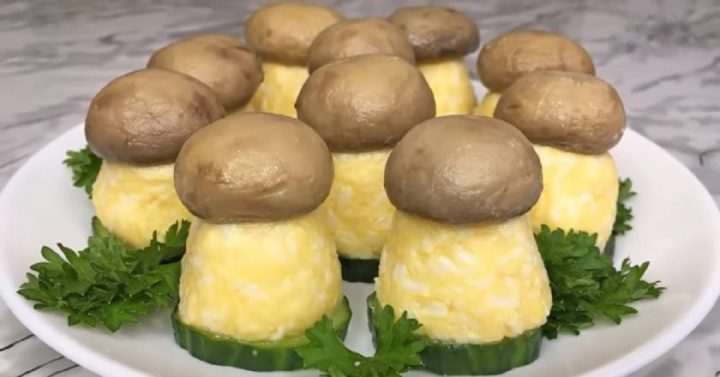 Zábavný předkrm ve tvaru hříbku z vajec a sýra - postup přípravy