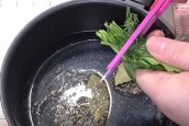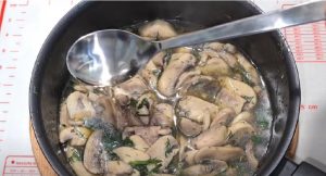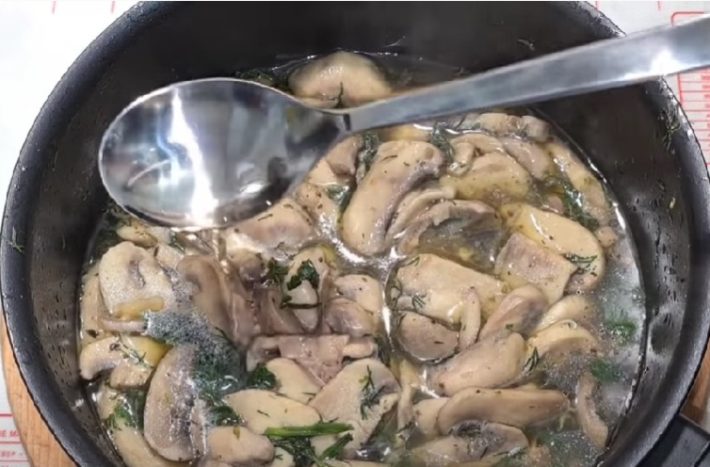 Jakmile je marináda horká, přidejte houby a míchejte. Začnou pouštět vodu, množství tekutiny tedy naroste. Když začne tekutina vřít, vařte houby ještě 6 minut. Pak je odstavte z kamen a přidejte k nim ocet. Pokud nemáte 3procentní, použijte jiný, jen jeho množství podle koncentrace upravte. Poté směs nechte mírně vychladnout.