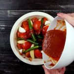 - Připravte si marinádu – do mísy dejte rajčatový protlak, olej, všechno koření a vodu, směs důkladně promíchejte.