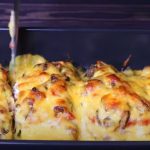 Zeleninovou směs v majonéze pak navrstvěte na každý plátek ryby, abyste maso úplně zakryli. Takto vložte pekáček do trouby předehřáté na 180 stupňů Celsia a pečte je po dobu čtyřiceti minut, dokud povrch zeleninové směsi krásně nezčervená a brambory s rybím masem nebudou úplně hotové.