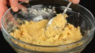 Oloupané nakrájené brambory vařte v osolené vodě 20 minut. Poté je rozšťouchejte a smíchejte s vejcem, pepřem, mletou sladkou paprikou a moukou.